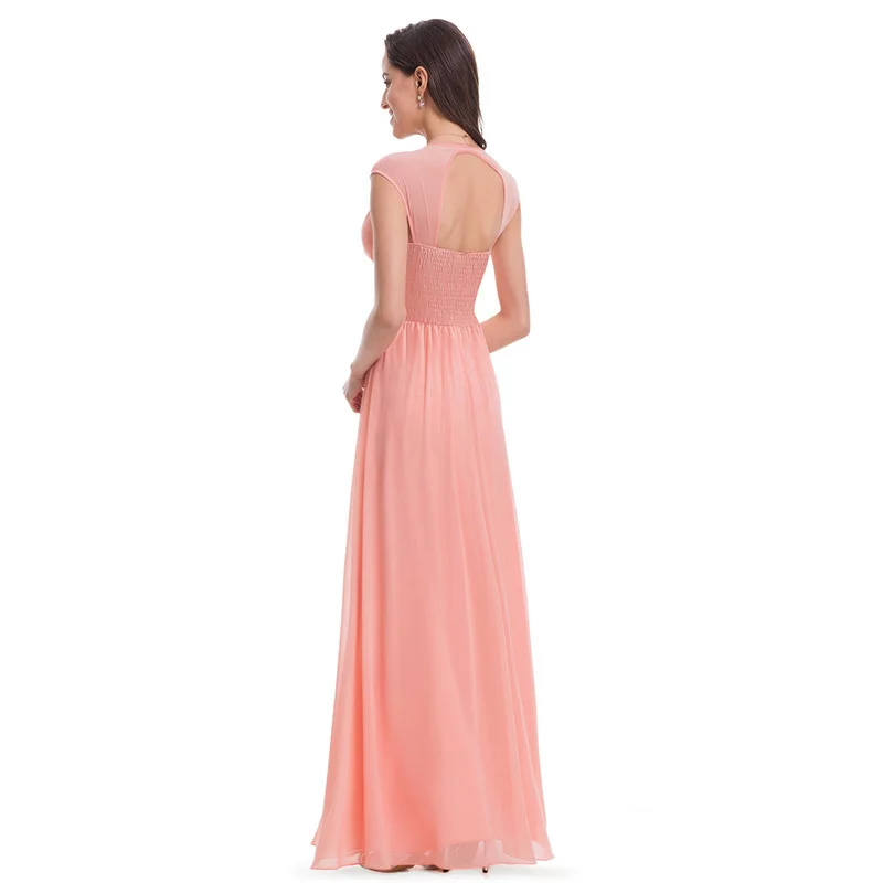 - Plus Size Elegant V-Neck Long Evening Dress EB27968 2018 Cheap Chiffon Party Gowns Ruched Beading Empire Hollow Out Formal Dress